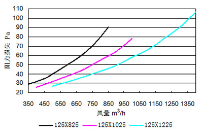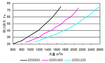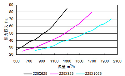 FKM型送風(fēng)口的阻力與滑動(dòng)風(fēng)口的尺寸有關(guān),阻力曲線如圖XXX所示,不同的顏色代表不同的滑動(dòng)風(fēng)口尺寸。阻力曲線是按照小環(huán)境風(fēng)管內(nèi)風(fēng)速為4m/s時(shí)測(cè)試的。