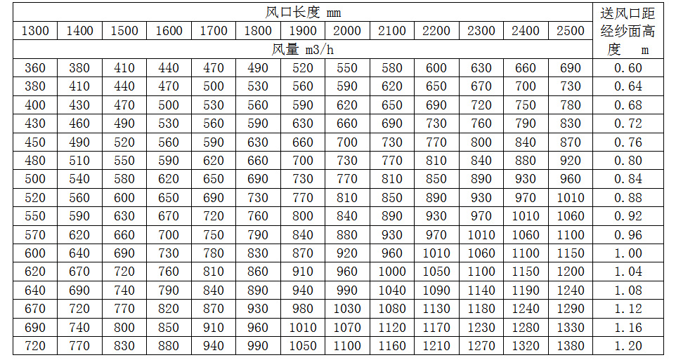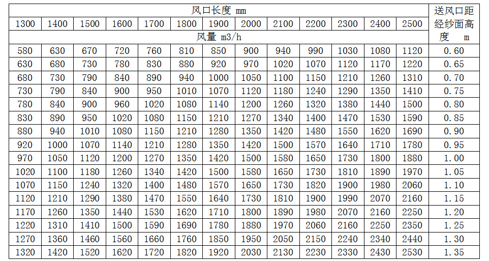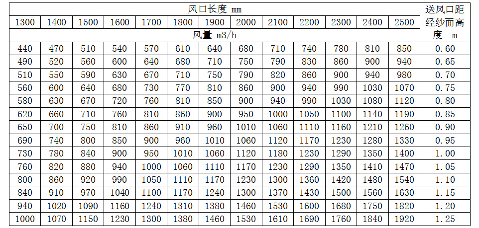 (3)風(fēng)口底部距離經(jīng)紗面的高度需要根據(jù)實(shí)際情況設(shè)計(jì),通常高度在0.8m至1.2m之間;