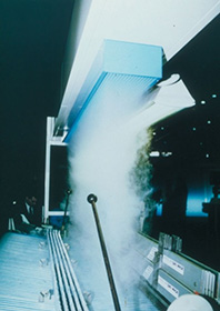 (1)濕空氣通過(guò)一個(gè)特殊設(shè)計(jì)的送風(fēng)裝置,以一種近似層流,低紊流的氣流狀態(tài)均勻地送出。這種幾乎無(wú)紊流的送風(fēng)氣流可避免與車間內(nèi)周圍的干燥空氣混合。