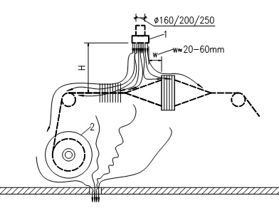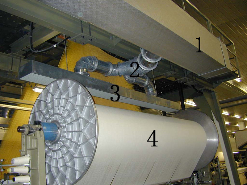 該系統(tǒng)將被調(diào)節(jié)后的空氣直接送入經(jīng)紗的開口區(qū)域,因此,相對(duì)于投資和能耗來(lái)講,可達(dá)到較好效果。主要送風(fēng)特點(diǎn)如下:
