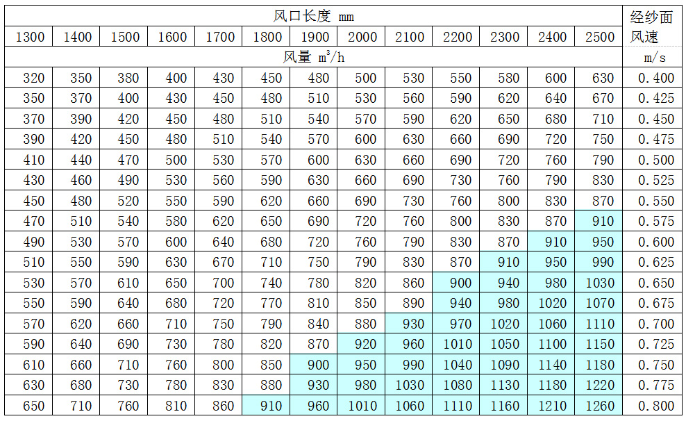 FKH1型送風(fēng)口的送風(fēng)量速查表格