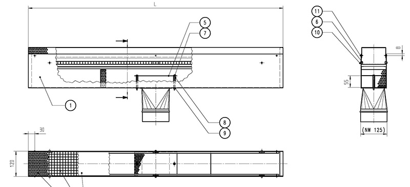 該送風(fēng)口的寬度為120mm,通過(guò)直徑125mm圓管連接到送風(fēng)主管上,風(fēng)口的長(zhǎng)度有多種規(guī)格,具體風(fēng)量如表3.1所示: