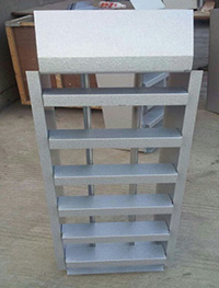 鋁制框架, 防雨網(wǎng),. 鍍鋅鋼絲網(wǎng)狀分布結(jié)構(gòu). 防雨百葉外框及百葉片采用鋁合金銀白氧化,葉片截面流線型,減少風(fēng)阻,葉片厚度1mm